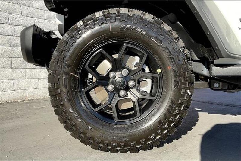 Quick Order Package 23W Willys (4-Wheel Drive Swing Gate Decal, 7 & 4 Pin Wiring Harness, 97 MPH Vehicle Max Speed Calibration, Advanced Brake Assist, Automatic Headlamps, Auxiliary Switches, Black Grille, Class II Receiver Hitch, Conventional Differential Front Axle, Corning Gorilla Glass, Dana M210 Wide HD Tube Front Axle, Dana M220 Wide Rear Axle, Daytime Running Lamps LED Accents, Deep Tint Sunscreen Windows, E-Locker Rear Axle, Enhanced Adaptive Cruise Control, Front LED Fog Lamps, Full Speed Forward Collision Warning Plus, Injection Molded Black Rear Bumper, LED Premium Reflector Headlamps, Mold In Color Bumper w/Gloss Black, Molded in Color Rubicon Highline Flare, MOPAR All-Weather Floor Mats, Off-Road Plus Mode, Power Heated Mirrors, Premium Wrapped Steering Wheel, Security Alarm, Sun Visors w/Illuminated Vanity Mirrors, Wheels: 17'' x 7.5'' Painted Black, Willy's Suspension, and Willys Hood Decal), 110 MPH Vehicle Max Speed Calibration, 4-Wheel Disc Brakes, 8 Speakers, ABS brakes, Air Conditioning, AM/FM radio: SiriusXM, Apple CarPlay/Android Auto, Aux Battery, Black 3-Piece Hard Top, Brake assist, Cloth Low-Back Bucket Seats, Compass, Delay-off headlights, Driver door bin, Driver vanity mirror, Dual front impact airbags, Dual front side impact airbags, Electronic Stability Control, Freedom Panel Storage Bag, Front anti-roll bar, Front Bucket Seats, Front Center Armrest w/Storage, Front fog lights, Front reading lights, Illuminated entry, Integrated roll-over protection, Jeep Trail Rated Kit, Low tire pressure warning, Non-Lock Fuel Cap w/o Discriminator, Normal Duty Suspension, Occupant sensing airbag, Outside temperature display, Overhead airbag, Panic alarm, ParkView Rear Back-Up Camera, Passenger door bin, Passenger vanity mirror, Power steering, Power windows, Radio data system, Radio: Uconnect 5 w/12.3'' Display, Rear anti-roll bar, Rear reading lights, Rear Window Defroster, Rear Window Wiper/Washer, Remote keyless entry, Speed control, Steering wheel mounted audio controls, Stop-Start Dual Battery System, Tachometer, Telescoping steering wheel, Tilt steering wheel, Traction control, Trip computer, Variably intermittent wipers, and Wheels: 17'' x 7.5'' Black Steel Styled.