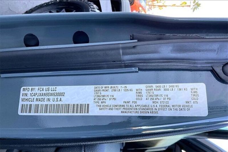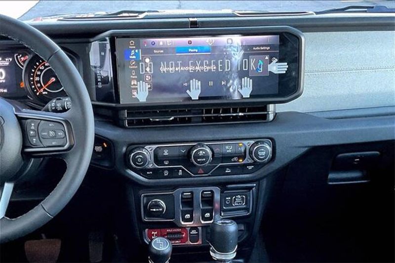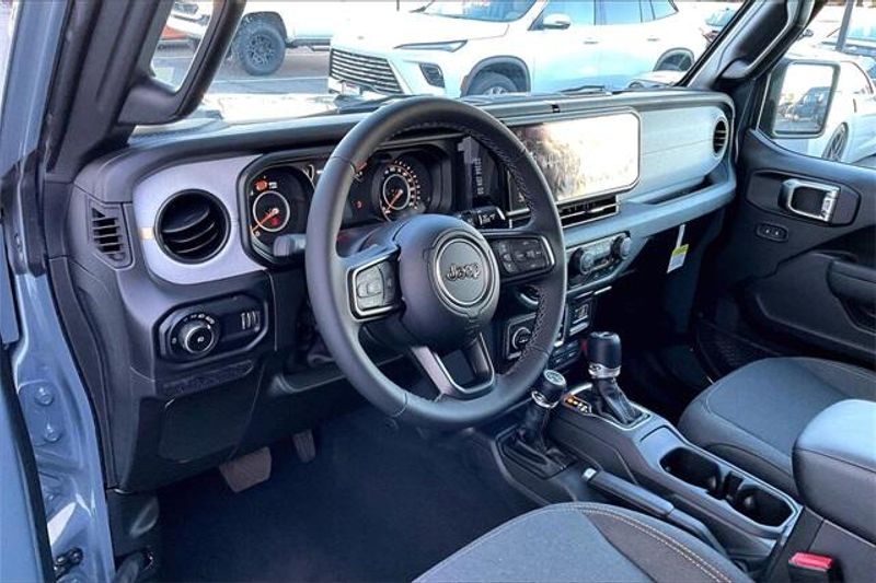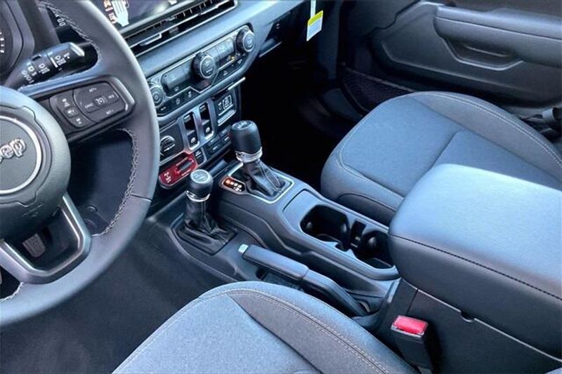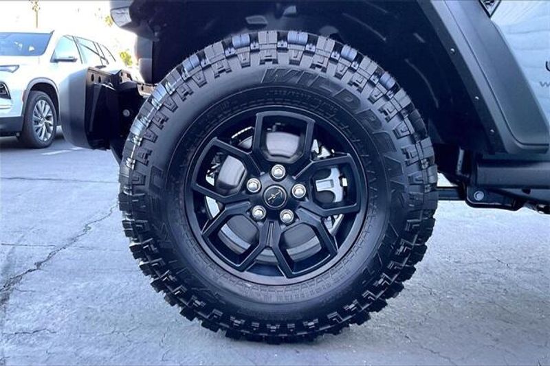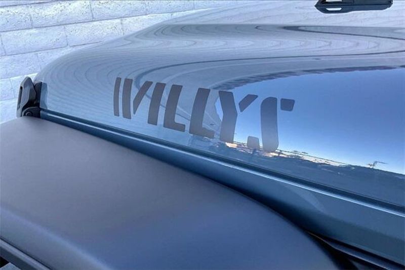 Quick Order Package 22W Willys (4-Wheel Drive Swing Gate Decal, 7 & 4 Pin Wiring Harness, 97 MPH Vehicle Max Speed Calibration, Advanced Brake Assist, Automatic Headlamps, Auxiliary Switches, Black Grille, Class II Receiver Hitch, Conventional Differential Front Axle, Corning Gorilla Glass, Dana M210 Wide HD Tube Front Axle, Dana M220 Wide Rear Axle, Daytime Running Lamps LED Accents, Deep Tint Sunscreen Windows, E-Locker Rear Axle, Enhanced Adaptive Cruise Control, Front LED Fog Lamps, Full Speed Forward Collision Warning Plus, Injection Molded Black Rear Bumper, LED Premium Reflector Headlamps, Mold In Color Bumper w/Gloss Black, Molded in Color Rubicon Highline Flare, MOPAR All-Weather Floor Mats, Off-Road Plus Mode, Power Heated Mirrors, Premium Wrapped Steering Wheel, Security Alarm, Sun Visors w/Illuminated Vanity Mirrors, Wheels: 17'' x 7.5'' Painted Black, Willy's Suspension, and Willys Hood Decal), 110 MPH Vehicle Max Speed Calibration, 4-Wheel Disc Brakes, 8 Speakers, ABS brakes, Air Conditioning, AM/FM radio: SiriusXM, Apple CarPlay/Android Auto, Aux Battery, Black 3-Piece Hard Top, Brake assist, Cloth Low-Back Bucket Seats, Compass, Delay-off headlights, Driver door bin, Driver vanity mirror, Dual front impact airbags, Dual front side impact airbags, Electronic Stability Control, Freedom Panel Storage Bag, Front anti-roll bar, Front Bucket Seats, Front Center Armrest w/Storage, Front fog lights, Front reading lights, Illuminated entry, Integrated roll-over protection, Jeep Trail Rated Kit, Low tire pressure warning, Non-Lock Fuel Cap w/o Discriminator, Normal Duty Suspension, Occupant sensing airbag, Outside temperature display, Overhead airbag, Panic alarm, ParkView Rear Back-Up Camera, Passenger door bin, Passenger vanity mirror, Power steering, Power windows, Radio data system, Radio: Uconnect 5 w/12.3'' Display, Rear anti-roll bar, Rear reading lights, Rear Window Defroster, Rear Window Wiper/Washer, Remote keyless entry, Speed control, Steering wheel mounted audio controls, Stop-Start Dual Battery System, Tachometer, Telescoping steering wheel, Tilt steering wheel, Traction control, Trip computer, Variably intermittent wipers, and Wheels: 17'' x 7.5'' Black Steel Styled.