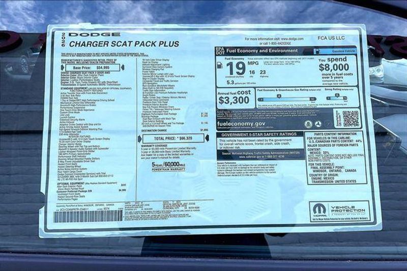 Blacktop Package (Dark Exterior Badging, Dual Rear Exhaust with Black Tips, and Wheels: 20'' x 10'' Dark Finish Aluminum), Highback Performance Seat Package (Heated Front Seats, Heated Second Row Seats, High Back Bucket Seats, Leather Performance Seats, Power 4-Way Driver Lumbar Adjust, Power 4-Way Passenger Lumbar Adjust, Power Adjust 12-Way Driver Seat, Power Adjust 12-Way Front Passenger Seat, and Ventilated Front Seats), Quick Order Package 22B Scat Pack Plus (16'' Color Driver Display, 2-Way Manual Adjust Front Head Restraints, 2-Way Power Driver Lumbar Adjust, 4G LTE Wi-Fi Hot Spot, 8-Way Power Driver Seat Adjust, 800 Amp Maintenance Free Battery, Alexa Built-in, Attitude Adjustment Lighting, Automatic High-Beam Headlamp Control, Black Color Multi-Function Mirrors, Bright Pedals, Connected Travel and Traffic Services, Connectivity - US/Canada, Disassociated Touchscreen Display, Exterior Mirrors Logo Lamps, Exterior Mirrors with Memory, Front Cubby Bin with Light, Glove Box Lamp, GPS Navigation, HD Radio, Heads-Up Display, Heated Exterior Mirrors, Illuminated Door Pull Handles, Integrated Center Stack Radio, Integrated Voice Command with Bluetooth, Leatherette Seats, LED Footwell Lighting, LED Map Pockets, Low Back Bucket Seats, Map-in-Cluster Display, Performance Pages, Power 2-Way Passenger Lumbar Adjust, Power Adjust 8-Way Front Passenger Seat, Power Adjust Mirrors, Power Hatch, Power Tilt/Telescope Steering Column, Power Windows Global Down w/Key Fob, Premium LED Low-High Reflective Headlamps, Radio, Driver Seat, Mirrors and Steering Column Memory, Radio: Uconnect 5 Navigation with 12.3'' Display, Rain Sensitive Windshield Wipers, Surround View Camera System, Traffic Sign Information, Windshield Wiper De-Icer, Wireless Apple CarPlay, Wireless Charging Pad, and Wireless Google Android Auto), Two Tone Paint Group, Wheel and Tire Package, AWD, Black Leather, 10 Speakers, 4-Wheel Disc Brakes, ABS brakes, Active Noise Control System, Air Conditioning, Alloy wheels, AM/FM radio: SiriusXM w/360L, Apple CarPlay/Android Auto, Auto-dimming Rear-View mirror, Automatic temperature control, Black Seats, Brake assist, Bumpers: body-color, Compass, Delay-off headlights, Driver door bin, Driver vanity mirror, Dual front impact airbags, Dual front side impact airbags, Electronic Stability Control, Emergency communication system: Dodge Connect, Four wheel independent suspension, Front anti-roll bar, Front Bucket Seats, Front Center Armrest, Front dual zone A/C, Front License Plate Bracket, Front reading lights, Fully automatic headlights, Garage door transmitter, Heated door mirrors, Heated front seats, Heated steering wheel, Illuminated entry, Knee airbag, Leather Shift Knob, Leatherette/Cloth Performance Seats, Low tire pressure warning, Manufacturer's Statement of Origin, Occupant sensing airbag, Outside temperature display, Overhead airbag, Overhead console, Panic alarm, ParkView Rear Back-Up Camera, Passenger door bin, Passenger vanity mirror, Power door mirrors, Power driver seat, Power steering, Power windows, Radio data system, Radio: Uconnect 5 with 12.3'' Display, Rear anti-roll bar, Rear reading lights, Rear seat center armrest, Rear window defroster, Remote keyless entry, Security system, Speed control, Split folding rear seat, Spoiler, Sport steering wheel, Steering wheel mounted audio controls, Tachometer, Telescoping steering wheel, Tilt steering wheel, Traction control, Trip computer, Variably intermittent wipers, Wheels: 20'' x 10'' Aluminum, and Wheels: 20'' x 11'' Black Aluminum. AWD, Black Leather.