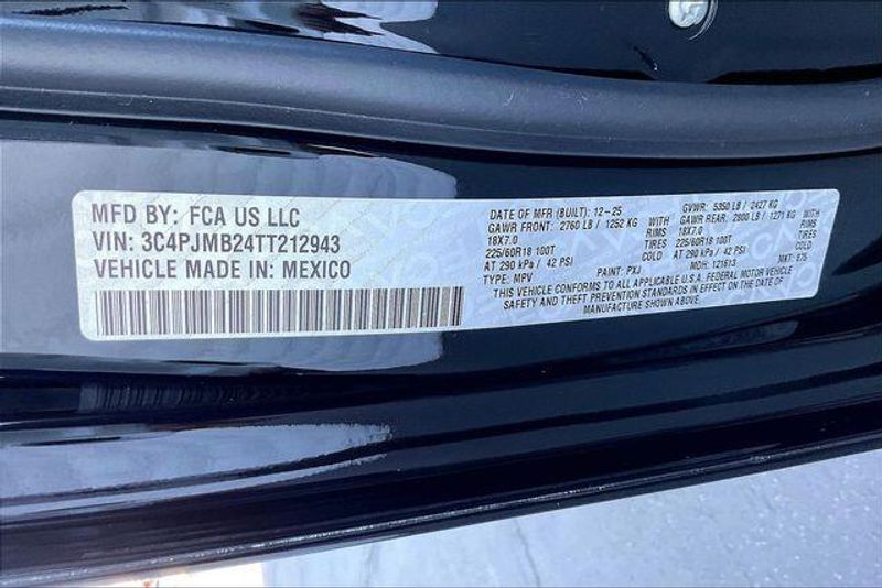 Quick Order Package 23G Limited (Auto-Dimming Rear-View Mirror, Capri Leatherette Perforated Seats, Cognac Interior Stitching, Exterior Mirrors Courtesy Lamps, Exterior Mirrors with Supplemental Signals, Gloss Black Mirrors, Heated Exterior Mirrors, Heated Steering Wheel, Limited Badge, Power 2-Way Passenger Lumbar Adjust, Power Adjust 6-Way Front Passenger Seat, Power Liftgate, Power Multi-Function Foldaway Mirrors, Security Alarm, Universal Garage Door Opener, and Wireless Charging Pad), 1.6L I4, 4-Wheel Disc Brakes, 4.16 Final Drive Ratio, 4G LTE Wi-Fi Hot Spot, 6 Speakers, ABS brakes, Air Conditioning, Alloy wheels, AM/FM radio: SiriusXM with 360L, Apple CarPlay, Apple CarPlay/Android Auto, Auto High-beam Headlights, Automatic temperature control, Brake assist, Compass, Delay-off headlights, Driver door bin, Driver vanity mirror, Dual front impact airbags, Dual front side impact airbags, Electronic Stability Control, Emergency communication system, Four wheel independent suspension, Front anti-roll bar, Front Bucket Seats, Front Center Armrest, Front dual zone A/C, Front fog lights, Front License Plate Bracket, Front reading lights, Fully automatic headlights, Global Telematics Box Module (TBM), Google Android Auto, Heated door mirrors, Heated front seats, Illuminated entry, Knee airbag, Low tire pressure warning, Occupant sensing airbag, Outside temperature display, Overhead airbag, Overhead console, Panic alarm, ParkView Rear Back-Up Camera, Passenger door bin, Passenger vanity mirror, Power door mirrors, Power driver seat, Power steering, Power windows, Radio data system, Radio: Uconnect 5 with 12.3'' Display, Rain sensing wipers, Rear anti-roll bar, Rear reading lights, Rear seat center armrest, Rear side impact airbag, Rear window defroster, Rear window wiper, Remote keyless entry, SiriusXM with 360L, Soul Cloth Seats with Labyrinth Embossing, Speed control, Speed-sensing steering, Split folding rear seat, Spoiler, Steering wheel mounted audio controls, Tachometer, Telescoping steering wheel, Tilt steering wheel, Traction control, Trip computer, US/Canada Connectivity, Variably intermittent wipers, Voltmeter, and Wheels: 18'' x 7'' Machine Face Painted Aluminum. 1.6L I4.