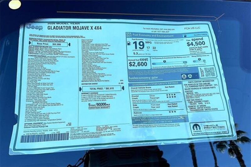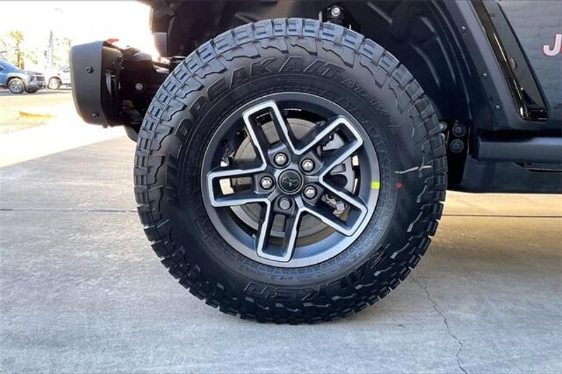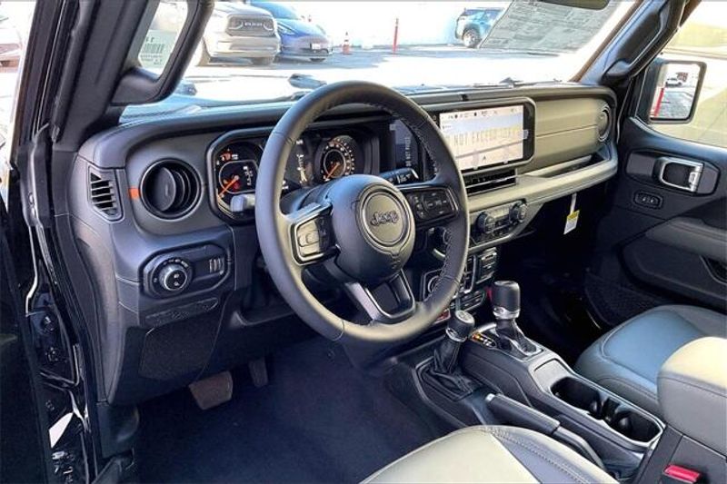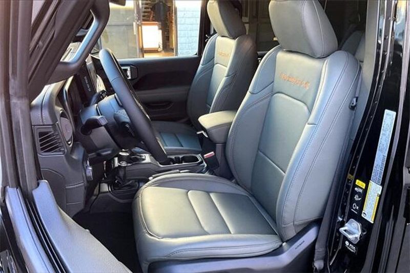 Quick Order Package 24A Mojave X (Alpine Premium Audio System, Auto High Beam Headlamp Control, Auto-Dimming Rear-View Mirror, Blind Spot and Cross Path Detection, Bluetooth Wireless Speaker, Body Color 3-Piece Hard Top, Body Color Rubicon Highline Flare, Freedom Panel Storage Bag, Full Length Floor Console Premium Armrest, Heated Front Seats, Heated Steering Wheel, Integrated Off-Road Camera, Integrated Voice Command with Bluetooth, Leather Trimmed Bucket Seats, Leather Wrapped Park Brake Handle, Leather Wrapped Shift Knob, Mojave Top Hood Decal, MOPAR Hardtop Headliner, ParkSense Rear Park Assist System, Power 4-Way Driver Lumbar Adjust, Power 4-Way Passenger Lumbar Adjust, Power Adjust 8-Way Driver Seat, Power Adjust 8-Way Front Passenger Seat, Premium Door Trim Panel, Radio: Uconnect 5 Navigation with 12.3'' Display, Rear Armrest with Cupholder Seat, Rear Sliding Window, Rear Window Defroster, Steel Front Bumper, Steel Rear Bumper, Universal Garage Door Opener, and USB Host Flip), 110 Mph Vehicle Max Speed Calibration, 12.3'' Touchscreen Display, 4-Wheel Disc Brakes, 4.10 Rear Axle Ratio, 4G LTE Wi-Fi Hot Spot, 8 Speakers, ABS brakes, Air Conditioning, Alexa Built-in, Alloy wheels, AM/FM radio: SiriusXM with 360L, Apple CarPlay, Apple CarPlay/Android Auto, Automatic temperature control, Brake assist, Compass, Connectivity - US/Canada, Delay-off headlights, Driver door bin, Driver vanity mirror, Dual front impact airbags, Dual front side impact airbags, Electronic Stability Control, Emergency communication system: Jeep Connect, For Details, Visit DriveUconnect.com, Front anti-roll bar, Front Bucket Seats, Front Center Armrest w/Storage, Front dual zone A/C, Front fog lights, Front License Plate Bracket, Front reading lights, Fully automatic headlights, Google Android Auto, Heated door mirrors, Heavy Duty Suspension with Gas Shocks, Illuminated entry, Integrated Center Stack Radio, Integrated roll-over protection, Low tire pressure warning, MyFlexCare Service Plan, Occupant sensing airbag, Outside temperature display, Overhead airbag, Panic alarm, Passenger door bin, Passenger vanity mirror, Power door mirrors, Power steering, Power windows, Premium Cloth Seats with Sport Bolsters, Radio data system, Radio: Uconnect 5 with 12.3'' Display, Rear anti-roll bar, Rear reading lights, Remote keyless entry, Security system, SiriusXM Radio Service, SiriusXM with 360L, Speed control, Split folding rear seat, Steering wheel mounted audio controls, Tachometer, Telescoping steering wheel, Tilt steering wheel, Traction control, Trip computer, Variably intermittent wipers, Voltmeter, and Wheels: 17'' x 7.5'' Dark Gray PainteD.