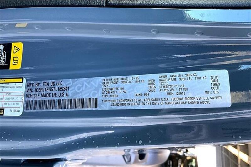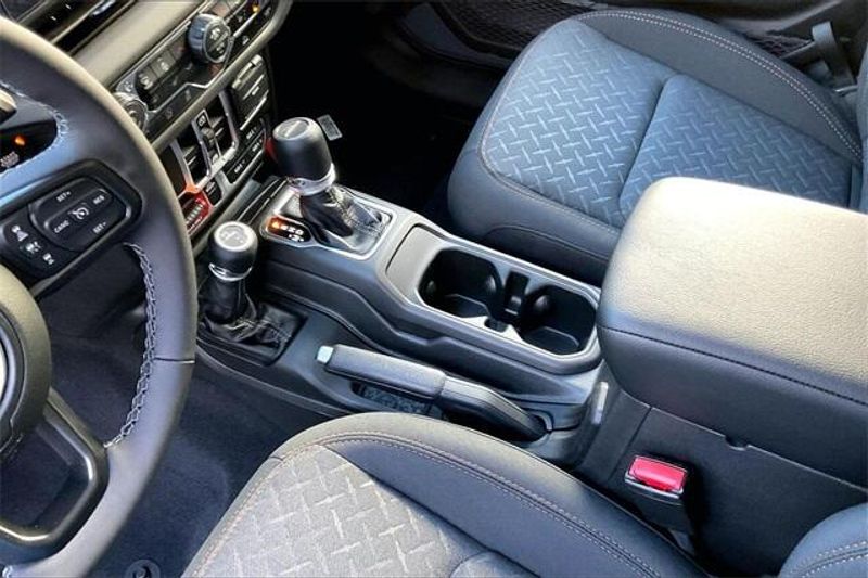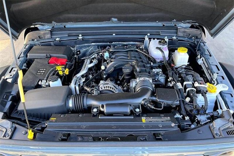 Convenience Group (Heated Front Seats, Heated Steering Wheel, Remote Start System, and Universal Garage Door Opener), Quick Order Package 24D Mojave, 110 Mph Vehicle Max Speed Calibration, 12.3'' Touchscreen Display, 4-Wheel Disc Brakes, 4.10 Rear Axle Ratio, 4G LTE Wi-Fi Hot Spot, 8 Speakers, ABS brakes, Air Conditioning, Alexa Built-in, Alloy wheels, AM/FM radio: SiriusXM with 360L, Apple CarPlay, Apple CarPlay/Android Auto, Automatic temperature control, Black 3-Piece Hard Top, Brake assist, Compass, Connectivity - US/Canada, Delay-off headlights, Driver door bin, Driver vanity mirror, Dual front impact airbags, Dual front side impact airbags, Electronic Stability Control, Emergency communication system: Jeep Connect, For Details, Visit DriveUconnect.com, Freedom Panel Storage Bag, Front anti-roll bar, Front Bucket Seats, Front Center Armrest w/Storage, Front dual zone A/C, Front fog lights, Front License Plate Bracket, Front reading lights, Fully automatic headlights, Google Android Auto, Heated door mirrors, Heavy Duty Suspension with Gas Shocks, Illuminated entry, Integrated Center Stack Radio, Integrated roll-over protection, Low tire pressure warning, Manufacturer's Statement of Origin, MOPAR All-Weather Slush Mats, Occupant sensing airbag, Outside temperature display, Overhead airbag, Panic alarm, Passenger door bin, Passenger vanity mirror, Power door mirrors, Power steering, Power windows, Premium Cloth Seats with Sport Bolsters, Radio data system, Radio: Uconnect 5 with 12.3'' Display, Rear anti-roll bar, Rear reading lights, Rear Sliding Window, Rear Window Defroster, Remote keyless entry, Security system, SiriusXM Radio Service, SiriusXM with 360L, Speed control, Split folding rear seat, Steering wheel mounted audio controls, Tachometer, Telescoping steering wheel, Tilt steering wheel, Traction control, Trip computer, USB Host Flip, Variably intermittent wipers, Voltmeter, and Wheels: 17'' x 7.5'' Dark Gray PainteD.