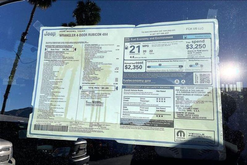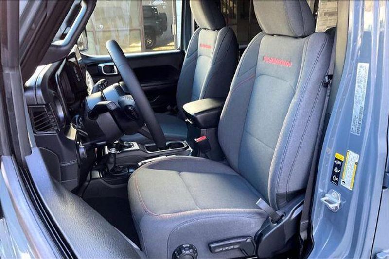Quick Order Package 22R Rubicon, Technology Group (12.3'' Touchscreen Display, 4G LTE Wi-Fi Hot Spot, Apple CarPlay, Auto-Dimming Rear-View Mirror, Connected Travel and Traffic Services, Connectivity - US/Canada, For More Info, Call 800-643-2112, Google Android Auto, GPS Navigation, HD Radio, Integrated Center Stack Radio, Integrated Off-Road Camera, Integrated Voice Command with Bluetooth, Radio: Uconnect 5 Navigation with 12.3'' Display, SiriusXM Radio Service, and SiriusXM with 360L), Xtreme 35 Tire Package (35'' Tire Suspension, Anti-Lock 4-Wheel Disc Perf Brakes, MOPAR Hinge-Gate Reinforcement, MOPAR Jack Spacer, MOPAR Tire Relocation Kit, Wheel Flare Extensions, and Wheels: 17'' x 8'' Machined with Black Pockets), 4-Wheel Disc Brakes, 8 Speakers, ABS brakes, Air Conditioning, Alloy wheels, Alpine Premium Audio System, AM/FM radio: SiriusXM with 360L, Apple CarPlay/Android Auto, Automatic temperature control, Aux Battery, Auxiliary Switches, Black 3-Piece Hard Top, Body Color Rubicon Highline Flare, Brake assist, Class II Receiver Hitch, Cloth Low-Back Bucket Seats, Compass, Delay-off headlights, Driver door bin, Driver vanity mirror, Dual front impact airbags, Dual front side impact airbags, Electronic Stability Control, Emergency communication system: Jeep Connect, Freedom Panel Storage Bag, Front anti-roll bar, Front Bucket Seats, Front Center Armrest w/Storage, Front dual zone A/C, Front fog lights, Front License Plate Bracket, Front reading lights, Fully automatic headlights, Heated door mirrors, Illuminated entry, Integrated roll-over protection, Jeep Trail Rated Kit, Low tire pressure warning, MOPAR All-Weather Floor Mats, No Soft Top, Non-Lock Fuel Cap Without Discriminator, Occupant sensing airbag, Outside temperature display, Overhead airbag, Panic alarm, ParkView Rear Back-Up Camera, Passenger door bin, Passenger vanity mirror, Performance Suspension, Power door mirrors, Power steering, Power windows, Radio data system, Radio: Uconnect 5 with 12.3'' Display, Rear anti-roll bar, Rear reading lights, Rear Window Defroster, Rear Window Wiper/Washer, Remote keyless entry, Security system, Speed control, Split folding rear seat, Steering wheel mounted audio controls, Stop-Start Dual Battery System, Tachometer, Telescoping steering wheel, Tilt steering wheel, Traction control, Trip computer, Variably intermittent wipers, Voltmeter, and Wheels: 17'' x 7.5'' Machined/Painted Black.