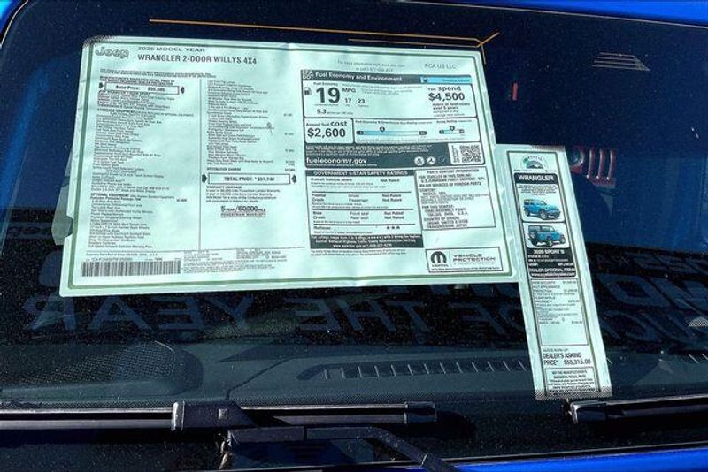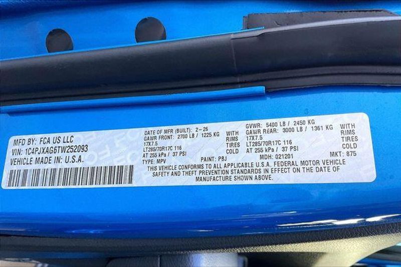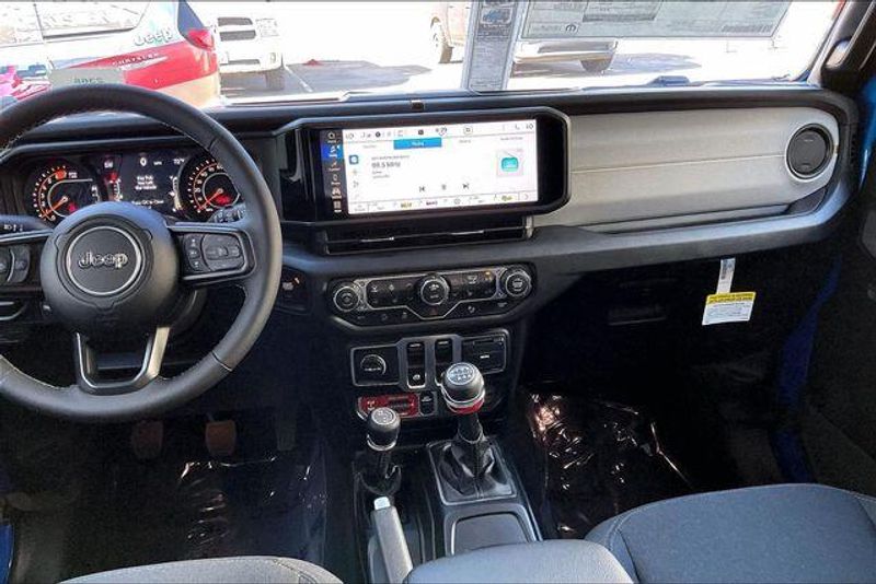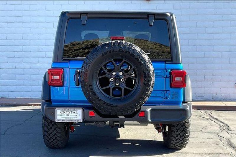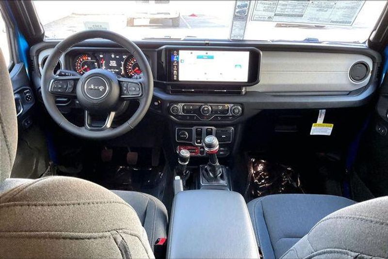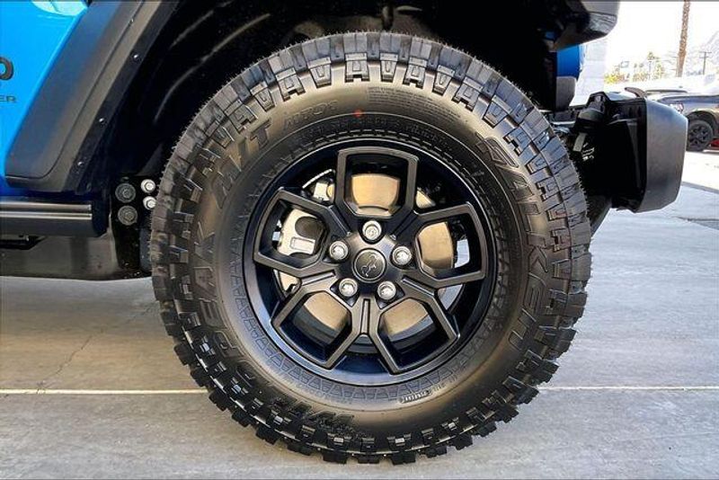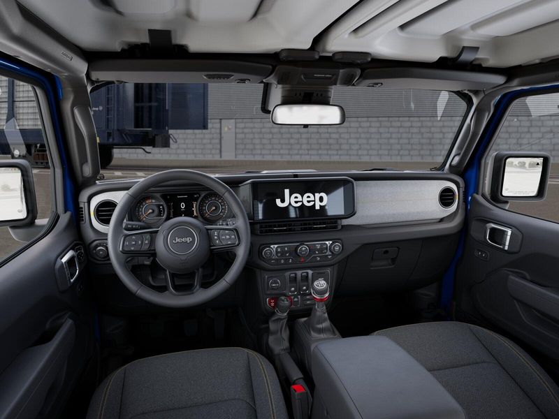 Convenience Group (2-Door Passive Entry, Front Door Locks, Air Conditioning with Auto Temp Control, Air Filtering, Cluster 7.0'' TFT Color Display, Emergency/Assistance Call, Heated Front Seats, Heated Steering Wheel, and Universal Garage Door Opener), Quick Order Package 23W Willys (4-Wheel Drive Swing Gate Decal, 7 and 4 Pin Wiring Harness, Advanced Brake Assist, Automatic Headlamps, Auxiliary Switches, Black Grille with Gloss Black Rings, Class II Receiver Hitch, Conventional Differential Front Axle, Corning Gorilla Glass, Dana M210 Wide HD Tube Front Axle, Dana M220 Wide Rear Axle, Daytime Running Lamps LED Accents, Deep Tint Sunscreen Windows, E-Locker Rear Axle, Enhanced Adaptive Cruise Control, Front LED Fog Lamps, Full Speed Forward Collision Warning Plus, Increased Travel Export Tuned Suspension, Injection Molded Black Rear Bumper, LED Premium Reflector Headlamps, Mold in Color Bumper with Gloss Black, Molded in Color Rubicon Highline Flare, MOPAR All-Weather Floor Mats, Off-Road Plus Mode, Power Heated Mirrors, Premium Wrapped Steering Wheel, Security Alarm, Sun Visors with Illuminated Vanity Mirrors, Wheels: 17'' x 7.5'' Painted Black, and Willys Hood Decal), Safety Group (Auto High Beam Headlamp Control, Blind Spot and Cross Path Detection, LED Taillamps, and ParkSense Rear Park Assist System), Steel Power Dome Hood Package (Power Dome Dual Vented Hood), 12.3'' Touchscreen Display, 4-Wheel Disc Brakes, 4G LTE Wi-Fi Hot Spot, 8 Speakers, ABS brakes, Air Conditioning, AM/FM radio: SiriusXM with 360L, Apple CarPlay, Apple CarPlay/Android Auto, Aux Battery, Black 3-Piece Hard Top, Brake assist, Cloth Low-Back Bucket Seats, Compass, Connectivity - US/Canada, Delay-off headlights, Driver door bin, Driver vanity mirror, Dual front impact airbags, Dual front side impact airbags, Electronic Stability Control, For More Info, Call 800-643-2112, Freedom Panel Storage Bag, Front anti-roll bar, Front Bucket Seats, Front Center Armrest w/Storage, Front fog lights, Front reading lights, Google Android Auto, Illuminated entry, Integrated Center Stack Radio, Integrated roll-over protection, Jeep Trail Rated Kit, Low tire pressure warning, Non-Lock Fuel Cap Without Discriminator, Normal Duty Suspension, Occupant sensing airbag, Outside temperature display, Overhead airbag, Panic alarm, ParkView Rear Back-Up Camera, Passenger door bin, Passenger vanity mirror, Power steering, Power windows, Radio data system, Radio: Uconnect 5 with 12.3'' Display, Rear anti-roll bar, Rear reading lights, Rear Window Defroster, Rear Window Wiper/Washer, Remote keyless entry, SiriusXM Radio Service, SiriusXM with 360L, Speed control, Steering wheel mounted audio controls, Stop-Start Dual Battery System, Tachometer, Telescoping steering wheel, Tilt steering wheel, Traction control, Trip computer, Variably intermittent wipers, and Wheels: 17'' x 7.5'' Black Steel Styled.
