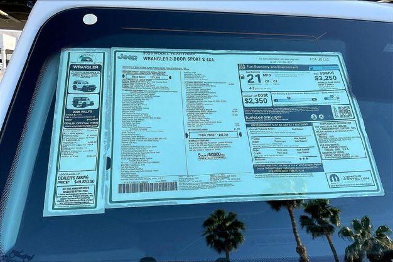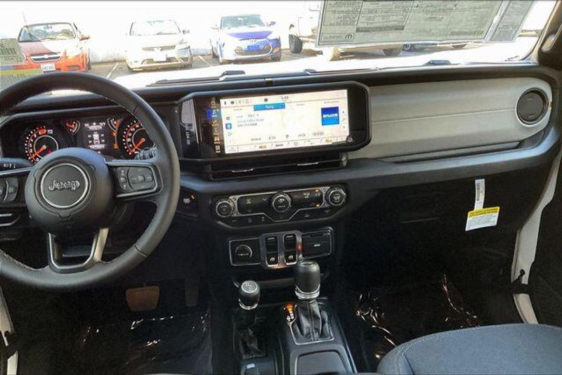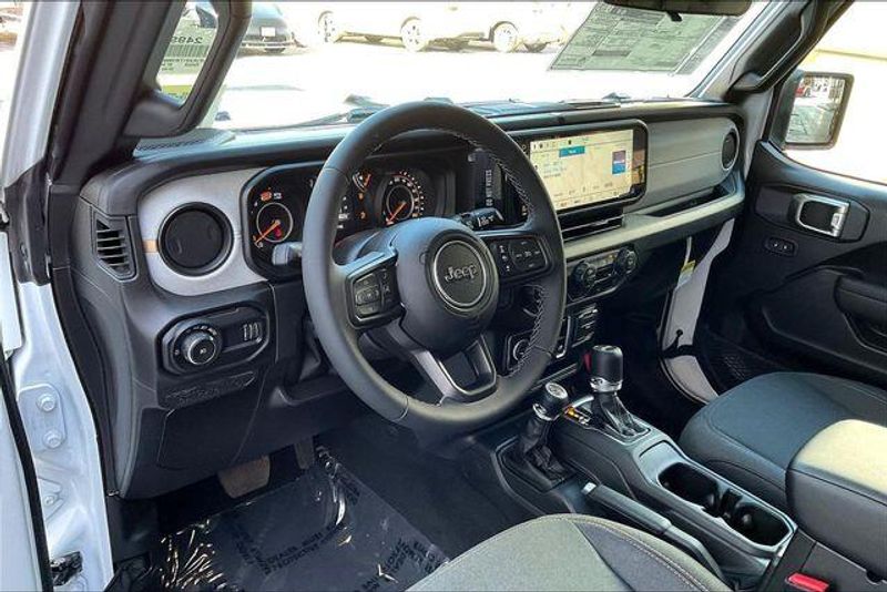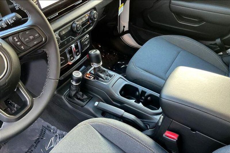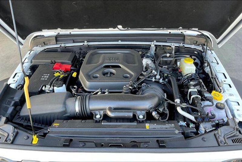 LED Headlamp and Fog Lamp Group (Front LED Fog Lamps and LED Premium Reflector Headlamps), Quick Order Package 22S Sport S (Advanced Brake Assist, Automatic Headlamps, Corning Gorilla Glass, Deep Tint Sunscreen Windows, Enhanced Adaptive Cruise Control, Full Speed Forward Collision Warning Plus, Power Heated Mirrors, Premium Wrapped Steering Wheel, Security Alarm, Sun Visors with Illuminated Vanity Mirrors, and Wheels: 17'' x 7.5'' Gray), Quick Order Package 23S Sport S, 12.3'' Touchscreen Display, 3.45 Overall Top Gear Ratio, 4-Wheel Disc Brakes, 4G LTE Wi-Fi Hot Spot, 8 Speakers, ABS brakes, Air Conditioning, AM/FM radio: SiriusXM with 360L, Apple CarPlay, Apple CarPlay/Android Auto, Aux Battery, Black 3-Piece Hard Top, Brake assist, Cloth Low-Back Bucket Seats, Compass, Connectivity - US/Canada, Delay-off headlights, Driver door bin, Driver vanity mirror, Dual front impact airbags, Dual front side impact airbags, Electronic Stability Control, For More Info, Call 800-643-2112, Freedom Panel Storage Bag, Front anti-roll bar, Front Bucket Seats, Front Center Armrest w/Storage, Front fog lights, Front reading lights, Google Android Auto, Illuminated entry, Integrated Center Stack Radio, Integrated roll-over protection, Jeep Trail Rated Kit, Low tire pressure warning, MOPAR All-Weather Floor Mats, Mopar Black Fuel Filler Door, Non-Lock Fuel Cap Without Discriminator, Normal Duty Suspension, Occupant sensing airbag, Outside temperature display, Overhead airbag, Panic alarm, ParkView Rear Back-Up Camera, Passenger door bin, Passenger vanity mirror, Power steering, Power windows, Radio data system, Radio: Uconnect 5 with 12.3'' Display, Rear anti-roll bar, Rear reading lights, Rear Window Defroster, Rear Window Wiper/Washer, Remote keyless entry, SiriusXM Radio Service, SiriusXM with 360L, Speed control, Steering wheel mounted audio controls, Stop-Start Dual Battery System, Tachometer, Telescoping steering wheel, Tilt steering wheel, Traction control, Trip computer, Variably intermittent wipers, and Wheels: 17'' x 7.5'' Black Steel Styled.
