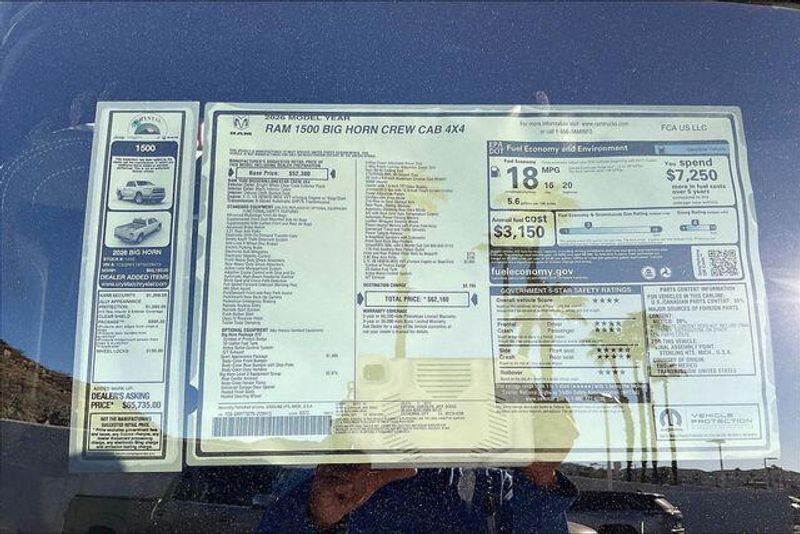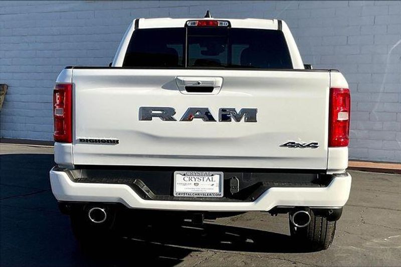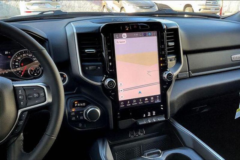 Big Horn Level 2 Equipment Group (115V Auxiliary Power Outlet, 115V Auxiliary Rear Power Outlet, 12'' Touchscreen Display, 3 Rear Seat Head Restraints, 4 Way Front Headrests, 400W Inverter, 4G LTE Wi-Fi Hot Spot, Apple CarPlay, Auto Power-Folding Mirrors, Auto-Dimming Exterior Driver Mirror, Auto-Dimming Rear-View Mirror, Black Exterior Mirrors, Black Premium Power Mirrors, Body Color Fender Flares, Bucket Seats, Center Console Parts Module, Cluster 7.0'' TFT Color Display, Configurable Drive Mode, Connectivity - US/Canada, Convex Wide-Angle Exterior Mirror Insert, Deluxe Cloth Bucket Seats, Disassociated Touchscreen Display, Exterior Mirrors Courtesy Lamps, Front Seat Back Map Pockets, Full Length Floor Console, Glove Box Lamp, Google Android Auto, GPS Antenna Input, GPS Navigation, HD Radio, Heated Front Seats, Heated Steering Wheel, Integrated Center Stack Radio, Leather Wrapped Steering Wheel, LED Footwell Lighting, Manual Adjust 4-Way Front Passenger Seat, Overhead LED Lamps, Power 2-Way Driver Lumbar Adjust, Power Adjust 8-Way Driver Seat, Power Adjustable Pedals, Premium Overhead Console, Rear 60/40 Folding Seat, Rear Center Armrest, Rear Power Sliding Window, Rear Window Defroster, Remote Tailgate Release, Security Alarm, SiriusXM Radio Service, Steering Wheel Mounted Audio Controls, Universal Garage Door Opener, and USB Host Flip), Quick Order Package 27Z Big Horn, Sport Appearance Package (Black Interior Accents, Body Color Door Handles, Body Color Front Bumper, Body Color Tailgate Handle, Grille Surround 1 Body Color Texture 1 Black, and RAM Grille Badge - Chrome), 33 Gallon Fuel Tank, 4-Wheel Disc Brakes, 48V Belt Starter Generator, 6 Speakers, ABS brakes, Air Conditioning, Alloy wheels, AM/FM radio, Apple CarPlay/Android Auto, Auto High-beam Headlights, Brake assist, Bumpers: chrome, Cloth Bucket Seats, Compass, Delay-off headlights, Driver door bin, Dual front impact airbags, Dual front side impact airbags, Electronic Stability Control, Front anti-roll bar, Front Bucket Seats, Front Center Armrest w/Storage, Front fog lights, Front License Plate Bracket, Front reading lights, Front wheel independent suspension, Fully automatic headlights, Heated door mirrors, Illuminated entry, Low tire pressure warning, Manual Adjust 4-Way Driver Seat, Manual Folding Exterior Mirrors, Manufacturer's Statement of Origin, Occupant sensing airbag, Outside temperature display, Overhead airbag, Overhead console, Panic alarm, ParkView Rear Back-Up Camera, Passenger door bin, Passenger vanity mirror, Power door mirrors, Power steering, Power windows, Radio data system, Rear anti-roll bar, Rear step bumper, Rear Wheelhouse Liners, Remote keyless entry, Speed control, Supplier Part Tracking (J-1), Tachometer, Telescoping steering wheel, Tilt steering wheel, Traction control, Trip computer, Variably intermittent wipers, Voltmeter, and Wheels: 18'' x 8'' Cast-Aluminum Painted.