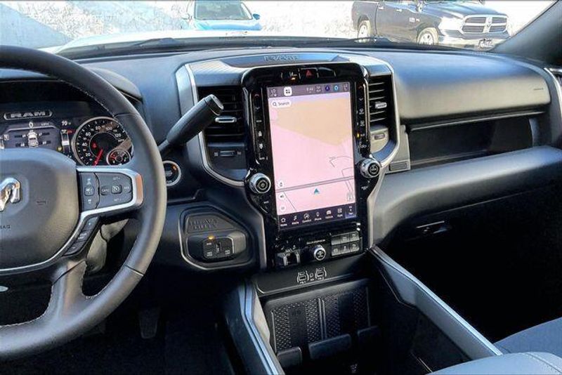 Big Horn Level 2 Plus Equipment Group (115-Volt Auxiliary Front Power Outlet, 115V Auxiliary Rear Power Outlet, 12'' Touchscreen Display, 2 Way Rear Headrest Seat, 2nd Row in Floor Storage Bins, 4 Way Front Headrests, 400W Inverter, 4G LTE Wi-Fi Hot Spot, 9 Alpine Speakers with Subwoofer, Active Lane Management System, Adaptive Steering System, Air Conditioning ATC with Dual Zone Control, Alexa Built-in, Anti-Spin Differential Rear Axle, Apple CarPlay, Auto High Beam Headlamp Control, Auto Power-Folding Mirrors, Auto-Dimming Rear-View Mirror, Black Exterior Mirrors, Blind Spot and Cross Path Detection, Bucket Seats, Center Stop Lamp with Cargo View Camera, Cluster 7.0'' TFT Color Display, Connected Travel and Traffic Services, Connectivity - US/Canada, Dampened Tailgate, Disassociated Touchscreen Display, Drowsy Driver Detection, Dual Glove Boxes, Dual Wireless Charging Pad, Emergency Vehicle Alert System (EVAS), Exterior 115V AC Outlet, Exterior Mirrors Courtesy Lamps, Exterior Mirrors with Heating Element, Exterior Mirrors with Supplemental Signals, Foam Bottle Insert (door Trim Panel), Folding Flat Load Floor Storage, Footwell Courtesy Lamp, For Details, Visit DriveUconnect.com, For More Info, Call 800-643-2112, Forward and Reverse Utility Lights, Front Seat Back Map Pockets, Full Length Upgraded Floor Console, Global Telematics Box Module, Glove Box Lamp, Google Android Auto, GPS Antenna Input, GPS Navigation, HD Radio, Heated Front Seats, Heated Steering Wheel, Integrated Voice Command with Bluetooth, LED Bed Lighting, LED Tail Lamps, Locking Lower Glove Box, Luxury Steering Wheel, Manual Adjust 4-Way Front Passenger Seat, Media Hub with 2 Charge Only USBs, Mirror Running Lights, MOPAR Deployable Bed Step, MOPAR Spray in Bedliner, MOPAR Trailer Camera Wiring with No Camera, Off-Road Info Pages, Power 2-Way Driver Lumbar Adjust, Power Adjust 8-Way Driver Seat, Power Adjust Mirrors, Power Adjustable Pedals, Power Heated Folding Telescopic Mirrors, Power Telescoping Mirrors, Power-Adjustable Convex Aux Mirrors, Premium Cloth Bucket Seats, Radio: Uconnect 5 Navigation with 12.0'' Display, Rain Sensitive Windshield Wipers, Rear 60/40 Folding Seat, Rear Dome with on/Off Switch Lamp, Rear Power Sliding Window, Red Tail Lamp Bezels, Remote Start System, Selectable Tire Fill Alert, SiriusXM Radio Service, SiriusXM with 360L, Steering Wheel Mounted Audio Controls, Sun Visors with Illuminated Vanity Mirrors, Surround View Camera System, Traffic Sign Recognition, Trailer Reverse Guidance, Trailer Tire Pressure Monitoring System, Trailer Tow Pages, and Universal Garage Door Opener), Night Edition (Black Exterior Truck Badging, Black Interior Accents, Black Wheel Center Hub, Body Color Grille-Surround, Gloss Black Nostrils/Mic Black Grille, Painted Front Bumper, Painted Rear Bumper, and Wheels: 20'' x 8.0'' Black Painted Aluminum), Quick Order Package 24Z Big Horn, Quick Order Package 2UZ Big Horn, Tow Technology Plus Group (Digital 3.0 Rear View Auto Dimming Mirror and Trailer Reverse Steering Control), 4-Wheel Disc Brakes, 40/20/40 Split Bench Seat, 5th Wheel/Gooseneck Towing Prep Group, 6 Speakers, ABS brakes, Air Conditioning, Alloy wheels, AM/FM radio: SiriusXM, Apple CarPlay/Android Auto, Brake assist, Bumpers: chrome, Center Hub, Cloth 40/20/40 Bench Seat, Compass, Delay-off headlights, Driver door bin, Dual front impact airbags, Dual front side impact airbags, Electronic Stability Control, Front anti-roll bar, Front Armrest with Cupholders, Front Center Armrest w/Storage, Front fog lights, Front License Plate Bracket, Front reading lights, Fully automatic headlights, Heated door mirrors, Illuminated entry, Low tire pressure warning, Manual Adjust 4-Way Driver Seat, Manufacturer's Statement of Origin, MOPAR Front and Rear Rubber Floor Mats, Occupant sensing airbag, Outside temperature displa