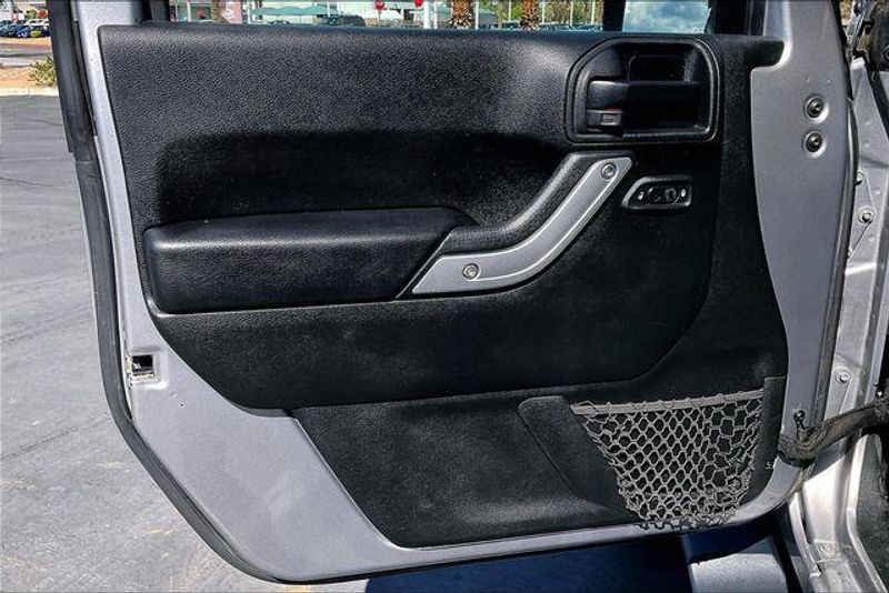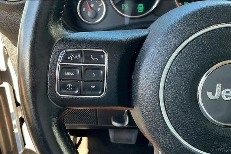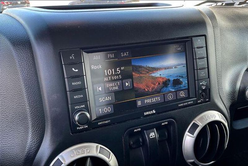 Connectivity Group (Tire Pressure Monitoring Display, Uconnect Voice Command w/Bluetooth, and Vehicle Information Center), Quick Order Package 24G (Body Color Appliques Front Bumper, Body Color Appliques Rear Bumper, and Body Color/Accent Color Grille), 18'' x 7.5'' Polished Satin Carbon Wheels, 3.21 Rear Axle Ratio, 4-Wheel Disc Brakes, 40GB Hard Drive w/28GB Available, 5-Year SiriusXM Travel Link Service, 6.5'' Touchscreen Display, 8 Speakers, ABS brakes, Air Conditioning, Alloy wheels, AM/FM radio: SiriusXM, Audio Jack Input for Mobile Devices, Auto-dimming Rear-View mirror, Brake assist, CD player, Cloth Seats w/Adjustable Head Restraints, Compass, Delete Sunrider Soft Top, Driver door bin, Driver Height Adjuster Seat, Driver vanity mirror, Dual front impact airbags, Electronic Stability Control, Freedom Panel Storage Bag, Front anti-roll bar, Front Bucket Seats, Front Center Armrest w/Storage, Front fog lights, Front reading lights, Front Seat Back Map Pockets, Fully automatic headlights, GPS Navigation, Heated door mirrors, Heavy Duty Suspension w/Gas Shocks, Illuminated entry, Integrated roll-over protection, Leather steering wheel, Low tire pressure warning, Manufacturer's Statement of Origin, Occupant sensing airbag, Outside temperature display, Panic alarm, Passenger door bin, Passenger vanity mirror, Power door mirrors, Power steering, Power windows, Radio data system, Radio: 130, Radio: 430 Nav, Rear anti-roll bar, Rear Window Defroster, Rear Window Wiper/Washer, Remote keyless entry, Remote USB Port, Security system, SiriusXM Travel Link, Speed control, Steering wheel mounted audio controls, Tachometer, Tilt steering wheel, Traction control, Trip computer, and Variably intermittent wipers.