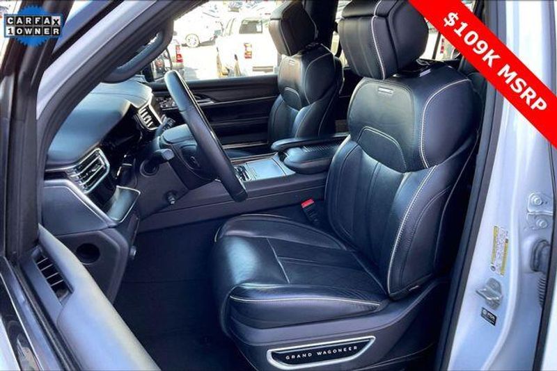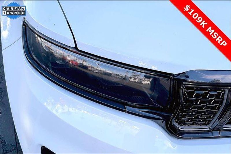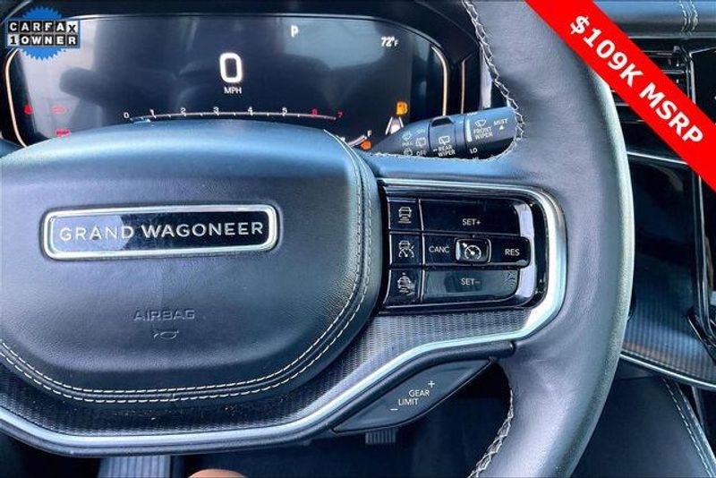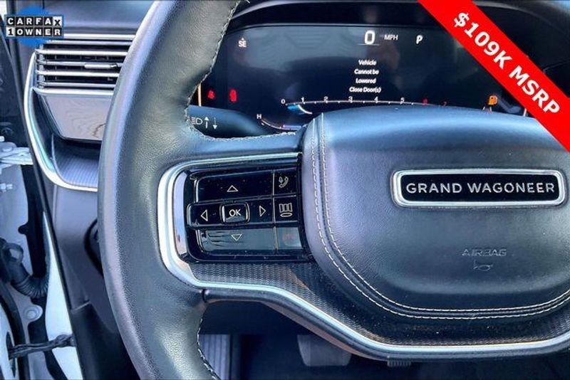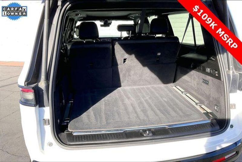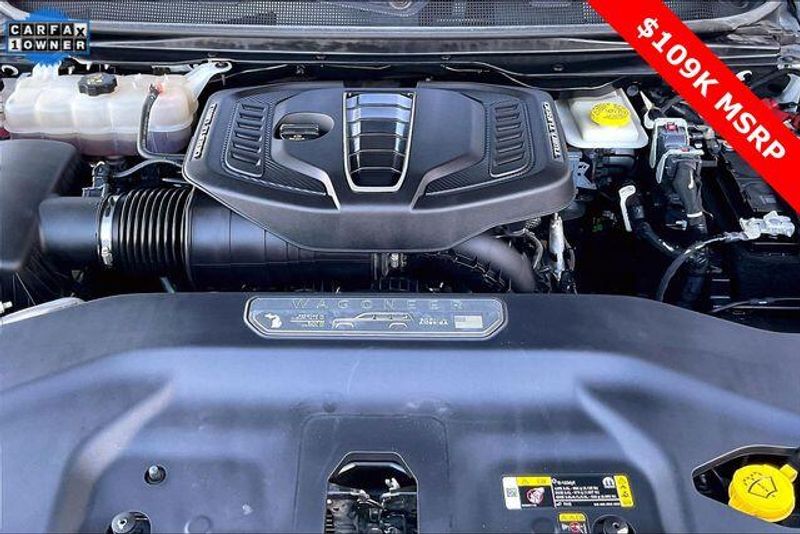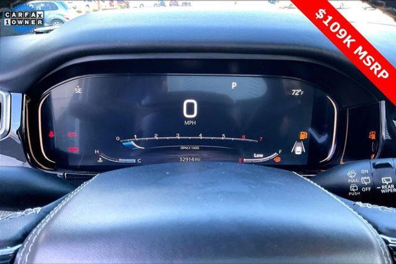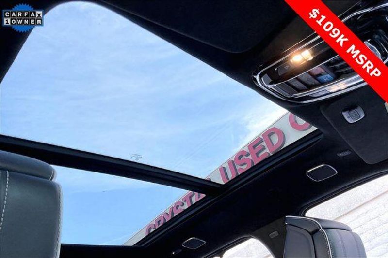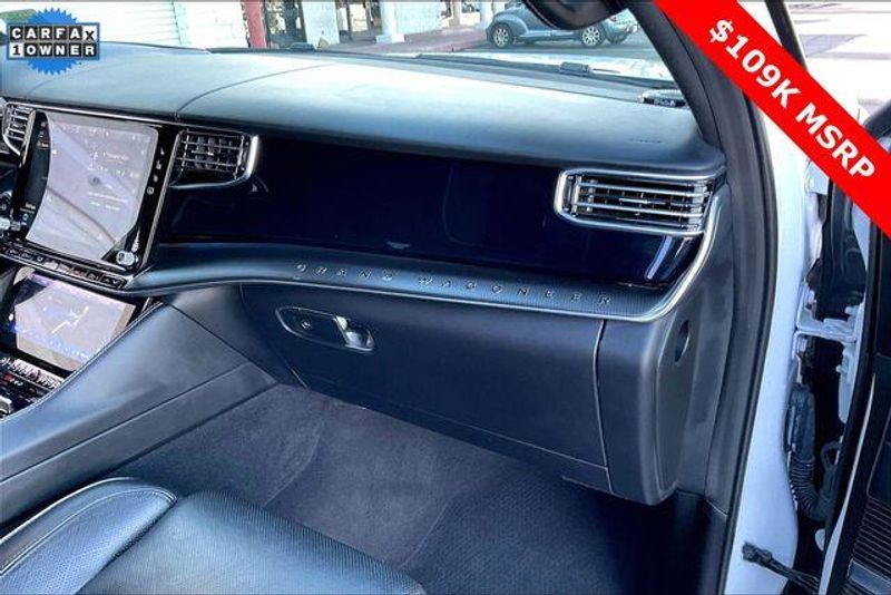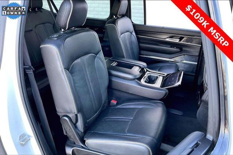Obsidian Appearance Package, Quick Order Package 28T Obsidian (23 Speaker McIntosh Reference Audio System, Adjustable Roof Rail Crossbars, Black Interior Accents, Black Roof, Front Console Cooler, Front Passenger Interactive Display, Gloss Black Upper & Lower DLO Molding, Piano Black Exterior Accents, Rearview Autodim Digital Display Mirror, Ventilated Rear Seats, and Wheels: 22'' x 9.0'' Tinted Polished w/Black Insert), Two Tone Paint Group, Navigation System, 19 Speakers, 3rd row seats: bench, 4-Wheel Disc Brakes, ABS brakes, Adjustable pedals, Air Conditioning, Alloy wheels, AM/FM radio: SiriusXM with 360L, Anti-whiplash front head restraints, Apple CarPlay/Android Auto, Audio memory, Auto High-beam Headlights, Auto-dimming door mirrors, Auto-dimming Rear-View mirror, Auto-leveling suspension, Automatic temperature control, Brake assist, Bumpers: body-color, Compass, Delay-off headlights, Driver door bin, Driver vanity mirror, Driver's Seat Mounted Armrest, Dual front impact airbags, Dual front side impact airbags, Electronic Stability Control, Emergency communication system, Four wheel independent suspension, Front anti-roll bar, Front Bucket Seats, Front Center Armrest w/Storage, Front dual zone A/C, Front fog lights, Front reading lights, Fully automatic headlights, Garage door transmitter, Genuine wood console insert, Genuine wood dashboard insert, Genuine wood door panel insert, Heads-Up Display, Heated door mirrors, Heated front seats, Heated rear seats, Heated steering wheel, Illuminated entry, Knee airbag, Leather steering wheel, Leather Trimmed Bucket Seats, Low tire pressure warning, Memory seat, Normal Duty Suspension, Occupant sensing airbag, Outside temperature display, Overhead airbag, Overhead console, Panic alarm, Passenger door bin, Passenger seat mounted armrest, Passenger vanity mirror, Pedal memory, Power adjustable front head restraints, Power door mirrors, Power driver seat, Power Liftgate, Power moonroof, Power passenger seat, Power steering, Power windows, Radio data system, Radio: Uconnect 5 Nav w/12.0'' Display, Rain sensing wipers, Rear air conditioning, Rear anti-roll bar, Rear dual zone A/C, Rear reading lights, Rear seat center armrest, Rear window defroster, Rear window wiper, Reclining 3rd row seat, Remote keyless entry, Security system, Speed control, Speed-sensing steering, Speed-Sensitive Wipers, Split folding rear seat, Steering wheel memory, Steering wheel mounted audio controls, Tachometer, Telescoping steering wheel, Tilt steering wheel, Traction control, Trip computer, Turn signal indicator mirrors, Variably intermittent wipers, Ventilated front seats, and Voltmeter.