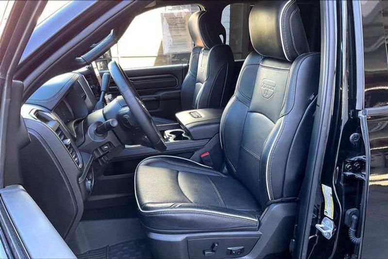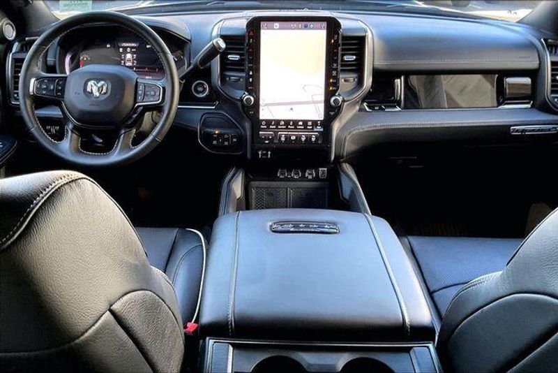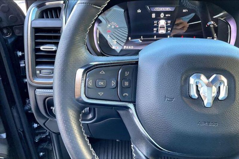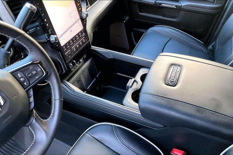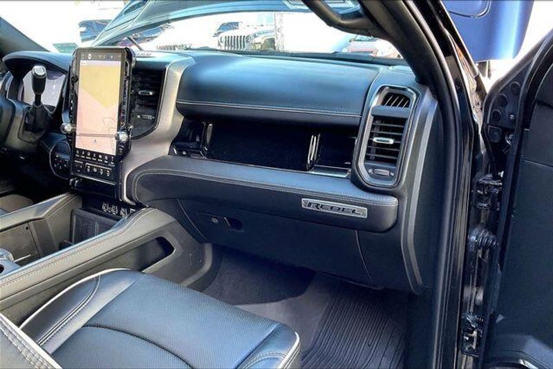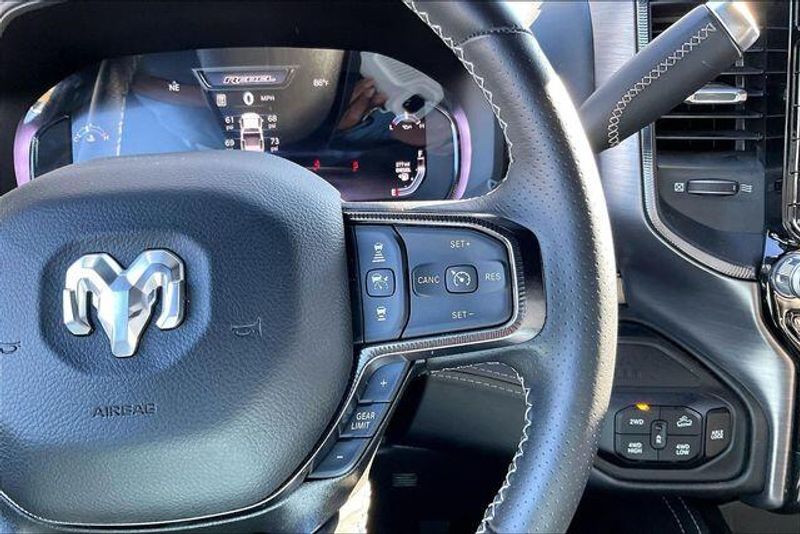 Rebel Level 2 Equipment Group (115V Auxiliary Rear Power Outlet, 14.4'' Touchscreen Display, 17 Speaker harman/kardon Premium Sound, 2 Way Rear Headrest Seat, 4 Way Front Headrests, 4G LTE Wi-Fi Hot Spot, Alexa Built-In, Aluminum Litho Instrument Panel Bezels w/Blk Trim, Apple CarPlay, Bucket Seats, Connected Travel & Traffic Services, Connectivity - US/Canada, CTR Stop Lamp w/Cargo View Camera, Disassociated Touchscreen Display, Dual Wireless Charging Pad, Emergency Vehicle Alert System (EVAS), Folding Flat Load Floor Storage, Front Passenger Interactive Display, Front Seat Back Map Pockets, Full Length Upgraded Floor Console, Global Telematics Box Module (TBM), Google Android Auto, GPS Antenna Input, GPS Navigation, HD Radio, Heated Front Seats, Heated Second Row Seats, Heated Steering Wheel, High Back Seats, Integrated Voice Command w/Bluetooth, Leather Trimmed Bucket Seats (NL), Leather Wrapped Grab Handle, Leather Wrapped Shift Control, LED Bed Lighting, Luxury Door Trim Panel (CTH), Media Hub w/2 Charge Only USBs, MOPAR Deployable Bed Step, MOPAR Spray In Bedliner, Off-Road Info Pages, Power 2-Way Driver Lumbar Adjust, Power 2-Way Passenger Lumbar Adjust, Power Adjust 8-Way Driver Seat, Power Adjust 8-Way Front Passenger Seat, Power Deployable Running Boards, Radio: Uconnect 5 Nav w/14.4'' Display, Radio/Driver Seat/Mirrors/Pedals Memory, Rear 60/40 Folding Seat, Selectable Tire Fill Alert, SiriusXM Radio Service, SiriusXM w/360L, Trailer Tow Pages, and Ventilated Front Seats), Safety Group (Active Lane Management System, Adaptive Steering System, Auto High Beam Headlamp Control, Drowsy Driver Detection, Rain Sensitive Windshield Wipers, and Traffic Sign Recognition), Quick Order Package 24R Rebel, 3.42 Axle Ratio, 3.73 Axle Ratio, 4-Wheel Disc Brakes, 6 Speakers, ABS brakes, Adjustable pedals, Air Conditioning, Alloy wheels, AM/FM radio: SiriusXM with 360L, Apple CarPlay/Android Auto, Auto Power-Folding Mirrors, Auto-dimming Rear-View mirror, Automatic temperature control, Black Exterio